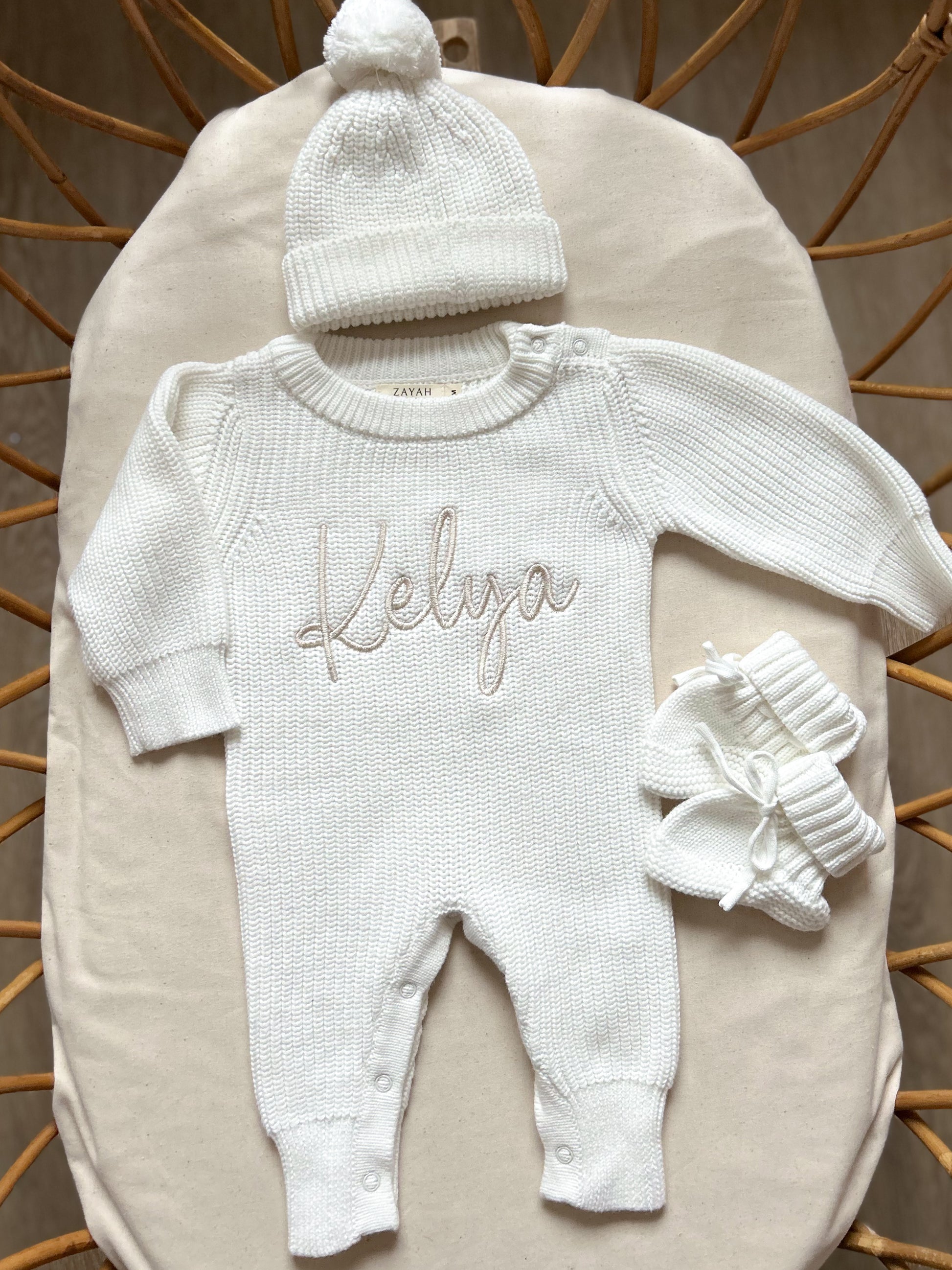 Offrez à votre bébé un confort absolu et un style intemporel avec notre combinaison en maille délicatement brodée.