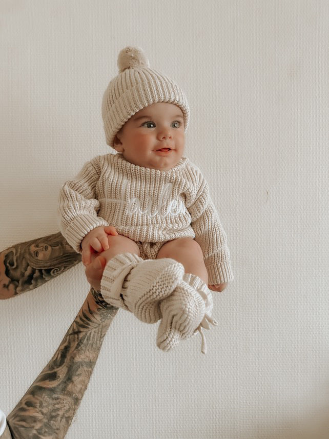 Offrez à votre bébé douceur et élégance avec notre ensemble 3 pièces composé d'une barboteuse, un bonnet des chaussons en maille de coton.
